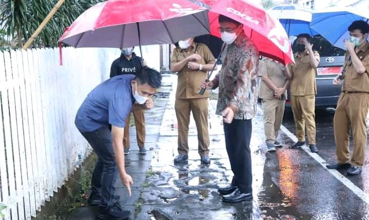 Walau Dalam Keadaan Hujan, Walikota Manado Turun Tinjau Infrastruktur