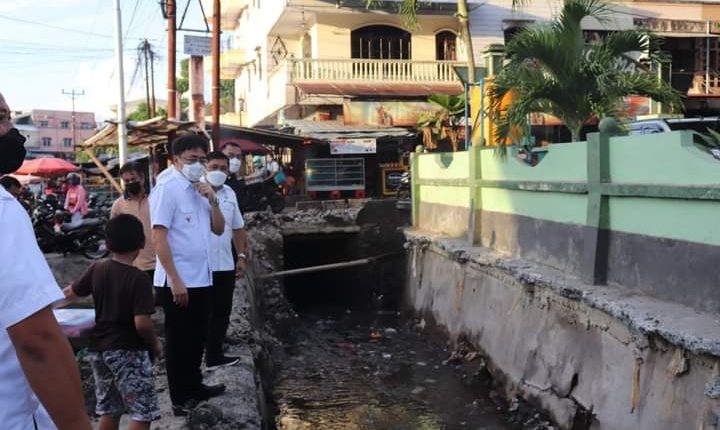 LiputanMetroNews|| Manado – Walikota Manado Andrei Angouw Meninjau Drainase dan parit-parit yang ada di seputaran Stadion Klabat pada Kamis, (29/9-21).