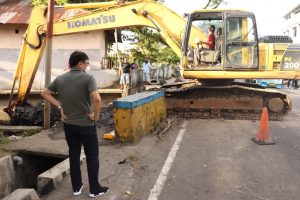 Didampingi Kadis PUPR Johny Suwu Walikota hadir dilapangan untuk mengetahui progres kegiatann pengerukan sungai dan pembersihan parit-parit yang tersumbat.