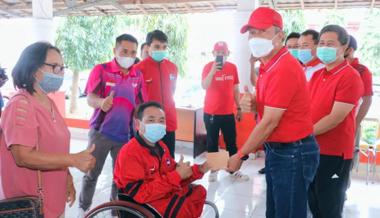 Amurang, LiputanMetroNews – PEMERINTAH KABUPATEN MINAHASA SELATAN MENYERAHKAN BONUS KEPADA ATLIT DISABILITAS PERAIH MEDALI DI AJANG PEPARNAS SETELAH MENGIKUTI AJANG PEPARNAS DI PAPUA PADA TAHUN 2021 OLEH BUPATI MINAHASA SELATAN FRANKY DONNY WONGKAR, SH YANG JUGA SELAKU KETUA UMUM KONI MINSEL.