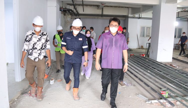 Masih dilokasi yang sama, Wali Kota menuju Pembangunan RSUD Kota Manado yang tepat berada samping Rusunawa. Disini Wali Kota dan tim mengecek proses pembangunan gedung dan fasilitas kesehatan lainnya.