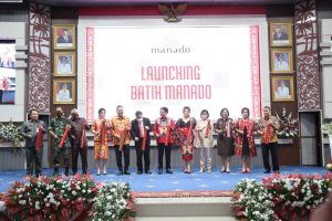 Acara dilanjutkan dengan Launching Batik Manado yang ditandai dengan memukul ‘tetengkoren’ serta penyampaian narasi arti motif Batik Manado oleh Felix Panelewen yang merupakan staf khusus Wali Kota. Acara diakhiri dengan pagelaran Busana yang dilakukan oleh Ikatan Nyong dan Nona Manado. (Advetorial)