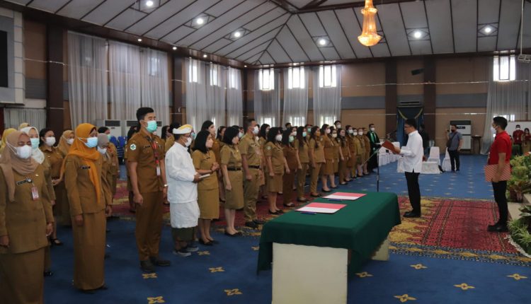 LIPUTANMETRONEWS -Selasa, (07/06/2022) Wali Kota Manado Andrei Angouw bertindak sebagai Inspektur Upacara pada acara Pelantikan dan Pengambilan Sumpah/Janji Pengangkatan Pertama Dalam Jabatan fungsional Tertentu di Lingkungan Pemerintah Kota Manado yang dilaksanakan di ruang serbaguna Pemerintah Kota Manado.