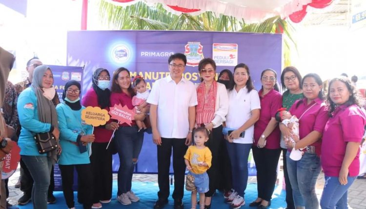 LIPUTANMETRONEWS – Wali Kota Manado Andrei Angouw didampingi istri Irene G. Angouw Pinontoan yang juga sebagai Ketua Tim Penggerak PKK Kota Manado menghadiri kegiatan Primanutri Pos Yandu Indomaret x Primagro di Indomaret Sindulang Mas, Kelurahan Sindulang Manado Pada Selasa, (07/06/2022)