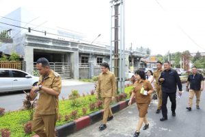 Dalam kunjungan lapangan ini Walikota didampingi Kadis Perkim Piter Eman dengan kunjungan awal di Kantor Kelurahan Paniki Bawah Kecamatan Mapanget.