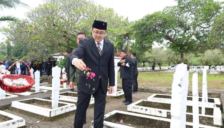 Selesai Upacara, Gubernur didampingi Pimpinan TNI Polri serta Walikota dan Wakil Walikota Manado melaksanakan tabur bunga di Pusara para Pahlawan.
