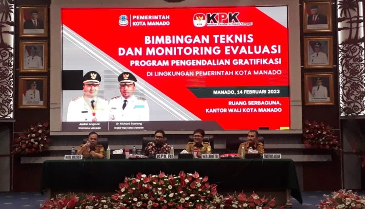 Manado, LiputanMetroNews – Pemerintah Kota (Pemkot) Manado bersama Komisi Pemberantasan Korupsi (KPK) RI melaksanakan Bimbingan Teknis (bimtek) dan Monitoring Evaluasi (monev) Program Pengendalian Gratifikasi di Ruang Serbaguna Kantor Walikota Manado pada (14/2/2023). Bimtek dan monev ini dihadiri langsung oleh Walikota dan Wakil Walikota Manado bersama Sekda Kota Manado serta narasumber dari KPK RI.