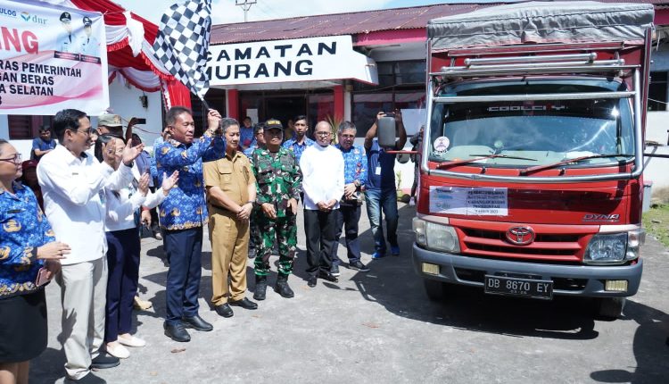 Minsel, Liputanmeronews – Bupati Minahasa Selatan Franky Donny Wongkar, SH Launching Penyaluran Cadangan Beras Pemerintah. Bertempat di Kantor Camat Amurang