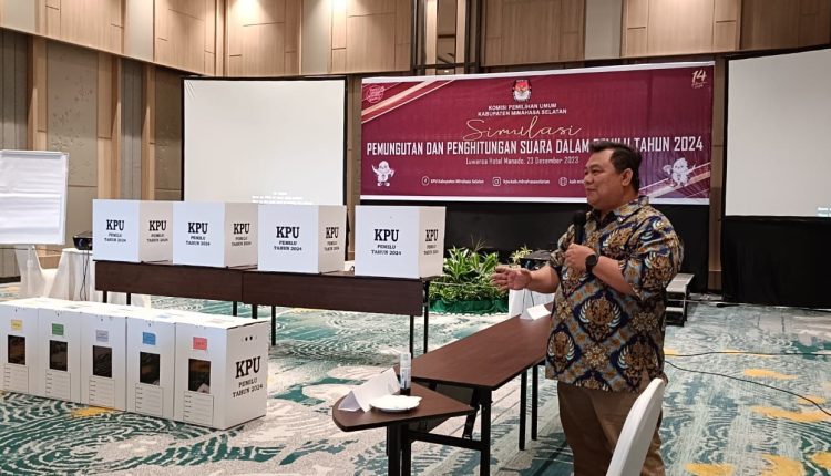 Minsel, Liputanmetronews – Komisi Pemilihan Umum (KPU) Kabupaten Minahasa Selatan mengadakan simulasi pemungutan dan perhitungan suara untuk pemilihan umum 2024. Acara ini berlangsung pada hari Sabtu, 23 Desember, di Ballroom I Hotel Luwansa, Manado, dari pukul 07.00 hingga 13.00.