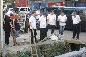 Setelah menyelesaikan kunjungan di area tersebut, Wali Kota menuju stadion Klabat untuk melihat perbaikan saluran air dan pembuatan tanggul di pertigaan depan Stadion Klabat.
