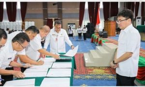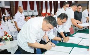 Acara kemudian dilanjutkan dengan prosesi penandatanganan perjanjian kinerja dan pakta integritas oleh Wali Kota, Sekretaris Daerah Kota Manado, Bapak Dr. Micler Lakat, S.H., M.H., bersama dengan para Asisten, Staf Ahli Wali Kota, Kepala SKPD, Kabag Setda Kota Manado, para Camat, serta Direktur RSUD dan RSKGM Kota Manado. (adve)