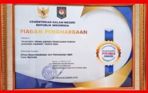 LiputanMetroNews – Manado, Pemerintah Kota Manado kembali mencatatkan prestasi gemilang di tingkat nasional. Melalui Dinas Kependudukan dan Pencatatan Sipil (Disdukcapil), Kota Manado berhasil meraih penghargaan bergengsi Dukcapil Prima Award 2024 sekaligus GAKKUM Award, menjadikannya sebagai kota dengan penilaian tertinggi di Indonesia dalam kategori ini.