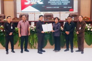 Manado, 14 Mei 2025 — Wali Kota Manado, Andrei Angouw, menegaskan pentingnya sinergi antara pemerintah dan legislatif dalam merancang masa depan Kota Manado. Hal ini disampaikannya saat menghadiri Rapat Paripurna DPRD Kota Manado yang membahas dan menandatangani Nota Kesepakatan Rancangan Awal Rencana Pembangunan Jangka Menengah Daerah (RPJMD) 2025–2029, Rabu (14/5).