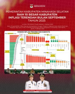 Dengan masuknya Minahasa Selatan ke dalam daftar 10 Kabupaten/Kota dengan inflasi terendah se-Indonesia, daerah ini menunjukkan bahwa konsistensi dalam tata kelola ekonomi dan kebijakan yang berpihak pada rakyat mampu menghasilkan dampak nyata bagi stabilitas dan pertumbuhan ekonomi daerah.