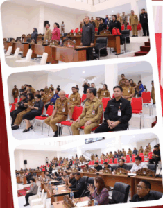 Ketua DPRD Kota Manado, Dra. Aaltje Dondokambey, M.Kes., Apt., memimpin langsung jalannya rapat yang dihadiri oleh jajaran pimpinan dan anggota DPRD, Forkopimda, pejabat Pemerintah Kota, camat se-Kota Manado, serta para undangan lainnya.