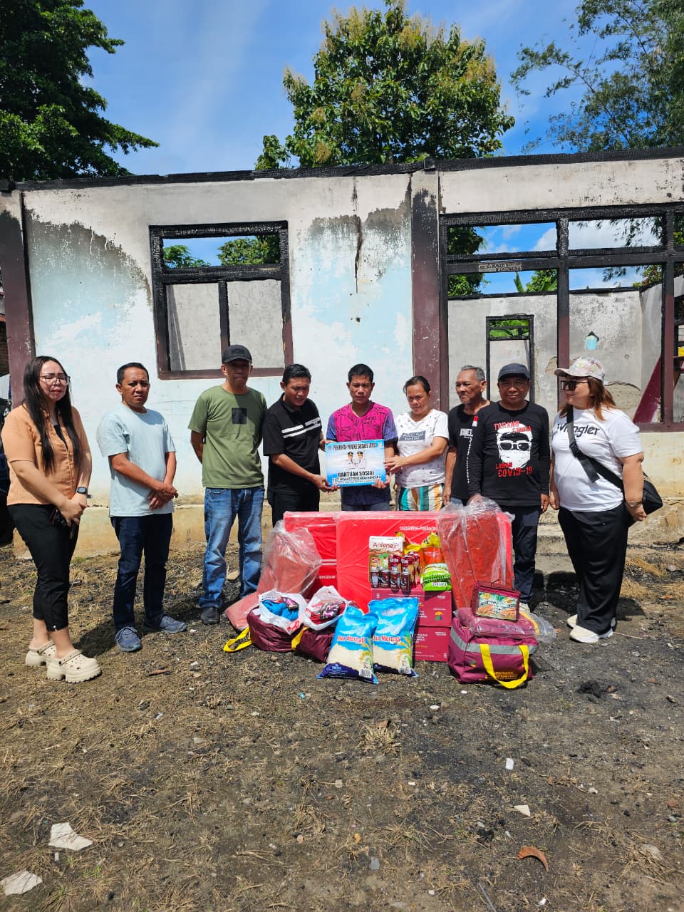 Penyerahan bantuan dilaksanakan langsung di lokasi kebakaran, RT 05 RW 01 Kelurahan Biga, dan diterima oleh salah satu korban, Refli Rolly Lampungay. Proses penyerahan dipimpin oleh Plt. Sekretaris Dinas Sosial Sulut, Dr. Zulkifli Golonggom, M.Si, yang turun langsung meninjau lokasi dan memastikan bantuan tersalurkan dengan baik.