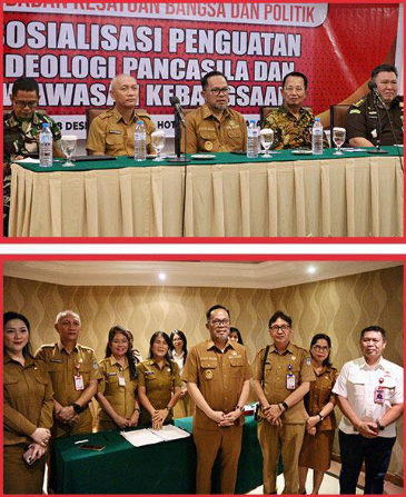 Kegiatan yang diprakarsai Badan Kesbangpol Kota Manado ini dibuka oleh Kepala Badan Kesbangpol, Drs. Sonny Takumansang, M.Si, yang juga memimpin pelaksanaan teknis acara. Sosialisasi tersebut menghadirkan sejumlah narasumber dan pejabat daerah, seperti Pasi Ops Kodim 1309/Manado Mayor Inf Sunaryo, Kasi Intel Kejari Manado Arthur Piri, S.H., M.H., serta Guru Besar Hukum Unsrat, Prof. Dr. Ronny Maramis, S.H., M.H.