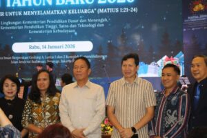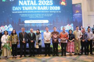 MINSEL, LMN – Bupati Minahasa Selatan, Franky Donny Wongkar, S.H., menghadiri Ibadah dan Perayaan Natal 2025 dan Tahun Baru 2026 Forum Kerukunan Umat Kristiani (FKUK) Korps Pegawai Republik Indonesia (Korpri) Kemendikbudristek di lingkungan Kementerian Pendidikan Dasar dan Menengah, Kementerian Pendidikan Tinggi, Sains, dan Teknologi, dan Kementerian Kebudayaan, Rabu ( 14 /01/2026)