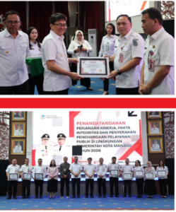 Selain penandatanganan, acara juga diisi dengan Penyerahan Penghargaan Pelayanan Publik bagi instansi yang menunjukkan kinerja terbaik, termasuk kategori Puskesmas, Kecamatan, dan Dinas/Badan. Penghargaan ini diberikan sebagai bentuk apresiasi atas upaya meningkatkan kualitas pelayanan kepada masyarakat.