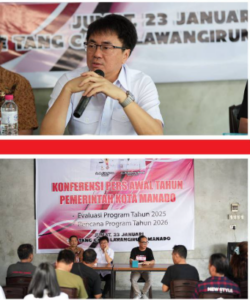 Manado, 23 Januari 2026 – Wali Kota Manado, Bpk. Andrei Angouw, bersama Wakil Wali Kota, dr. Richard Sualang, menegaskan pembangunan infrastruktur dan peningkatan layanan publik sebagai prioritas utama Pemerintah Kota Manado tahun 2026. Pernyataan ini disampaikan dalam Konferensi Pers Awal Tahun yang digelar Jumat (23/1/2026) di The Tang Cafe Lawangirung dan dihadiri oleh Aliansi Pers Manado (APM) serta pejabat terkait.