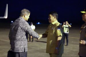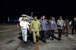 Manado – Gubernur Sulawesi Utara, Yulius Selvanus, menjemput langsung utusan khusus Presiden Republik Indonesia, Hashim Djojohadikusumo, setibanya di VIP Pemerintah Daerah Bandara Sam Ratulangi Manado, Selasa (7/3/2026).