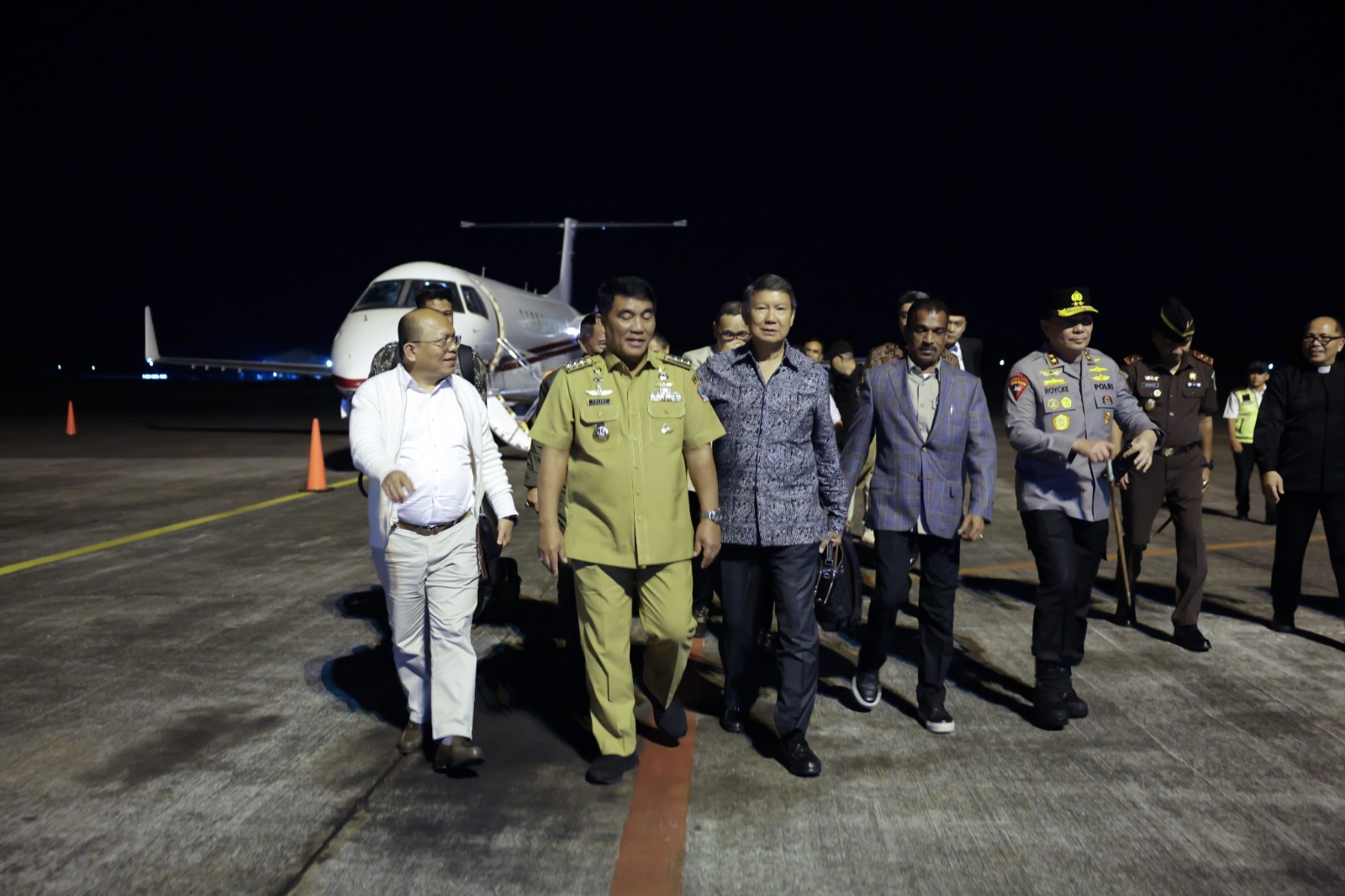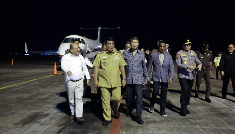 Manado – Gubernur Sulawesi Utara, Yulius Selvanus, menjemput langsung utusan khusus Presiden Republik Indonesia, Hashim Djojohadikusumo, setibanya di VIP Pemerintah Daerah Bandara Sam Ratulangi Manado, Selasa (7/3/2026).